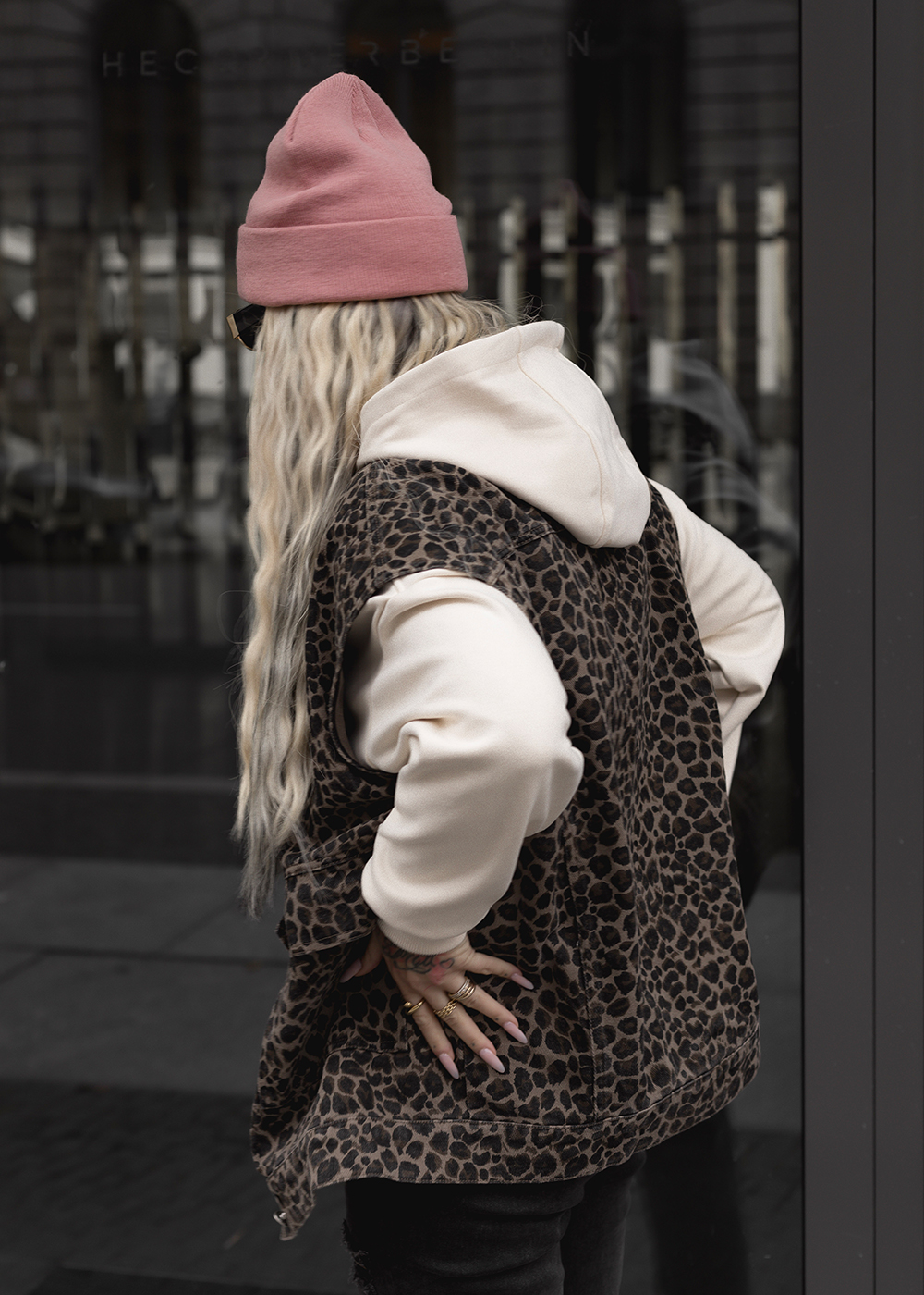 Pepper entspricht Größe S und trägt Größe UNISIZE bei einer Körpergröße von 1,63m und einem Gewicht von 59kg.