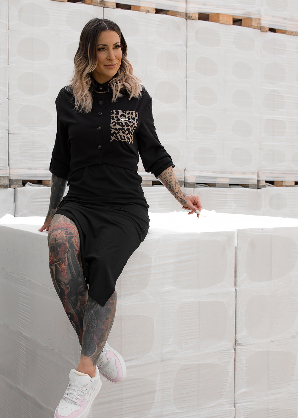 Pepper entspricht Größe S und trägt Größe S/M bei einer Körpergröße von 1,63m und einem Gewicht von 57kg.