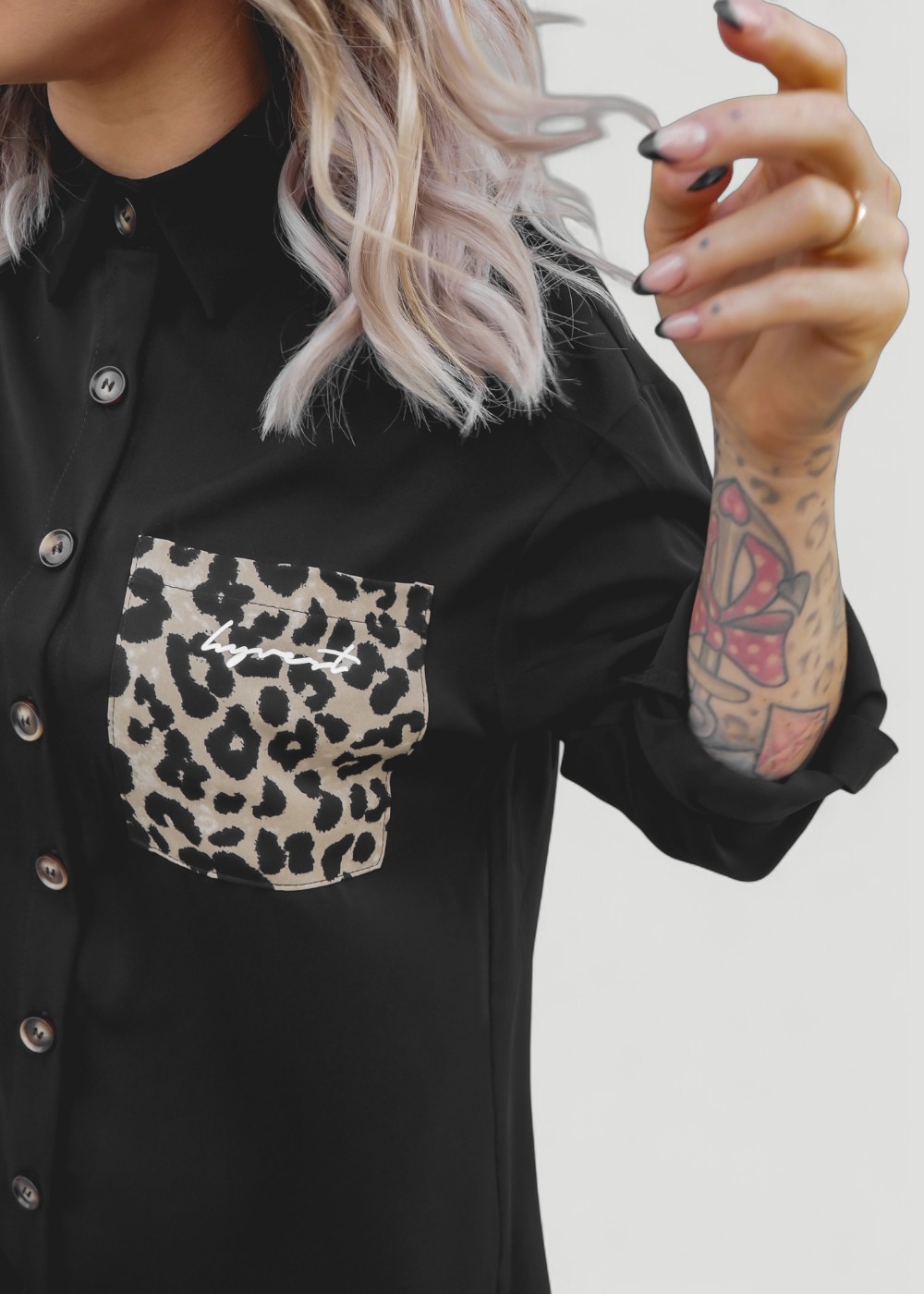 Locker geschnitten fällt diese Bluse lässig über den Po und sorgt für einen super Tragekomfort. Hergestellt aus einem federleichten und luftigen Stoff ist das Styling damit absolut variabel. Das Highlight ist die Leo-Print Brusttasche mit weißem Line-Logo auf der linken Seite.
