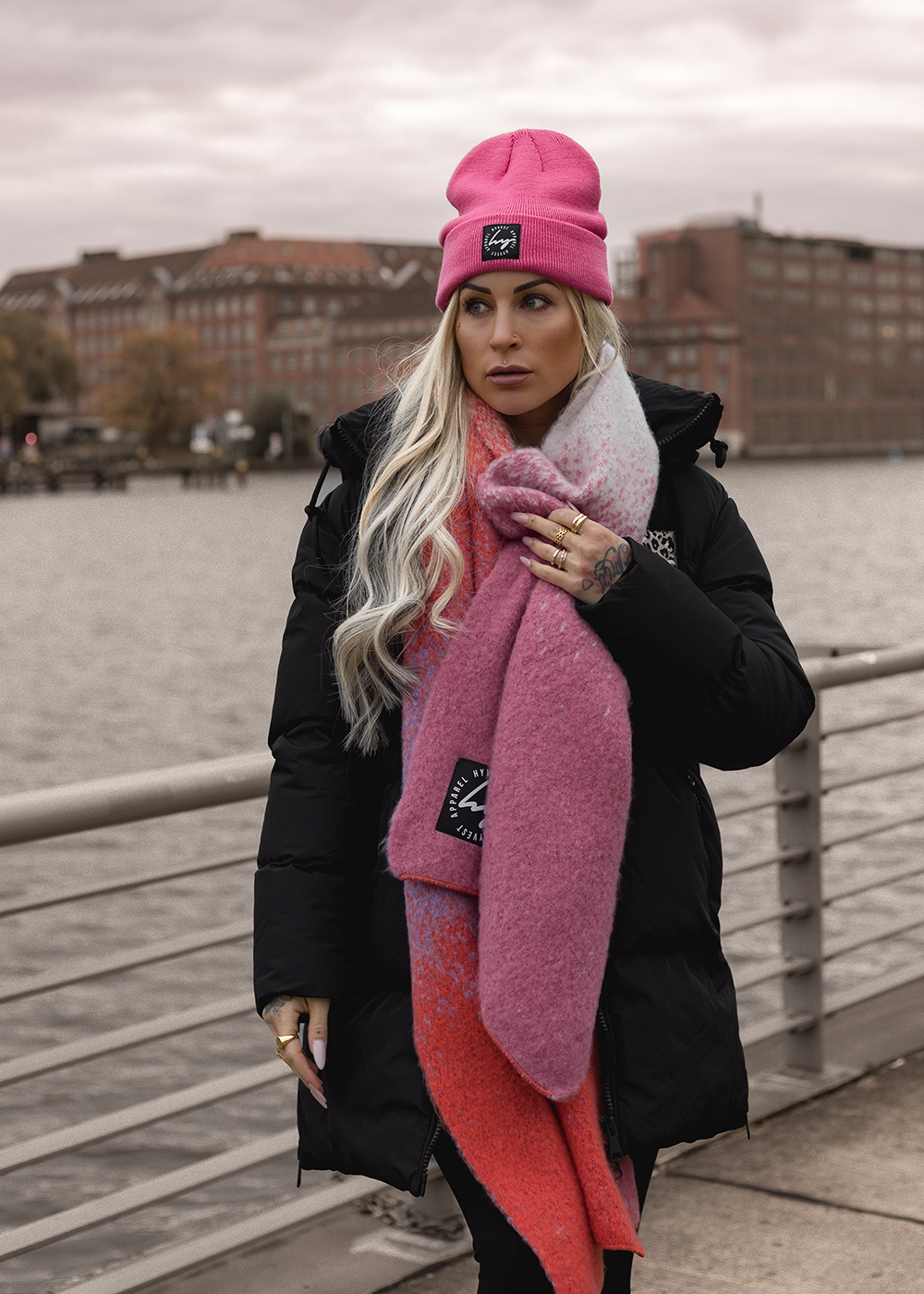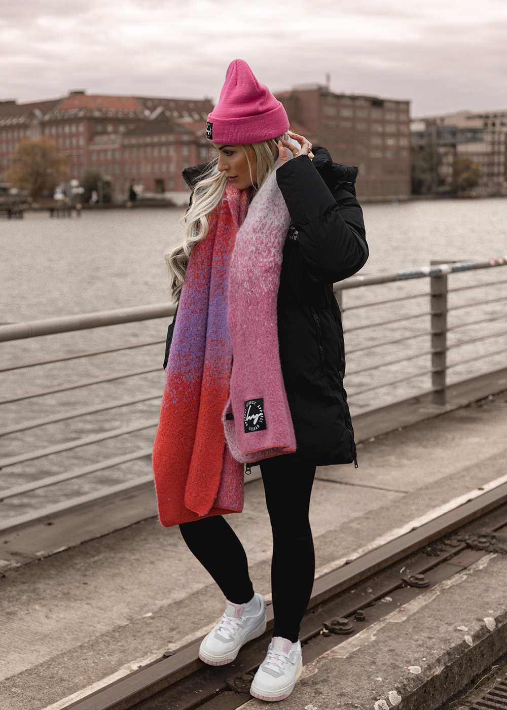 Wie cozy willst du es? Ja! Na dann ist dieser Schal dein Must have für diese Saison. Super weich und groß gemustert ist das in auffälligen pink-orange-lila-Tönen Love on first sight!