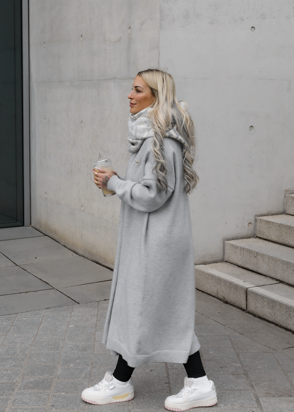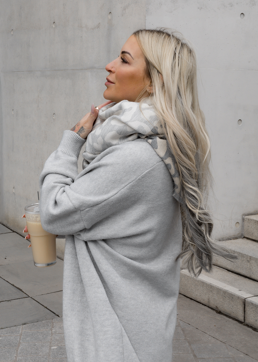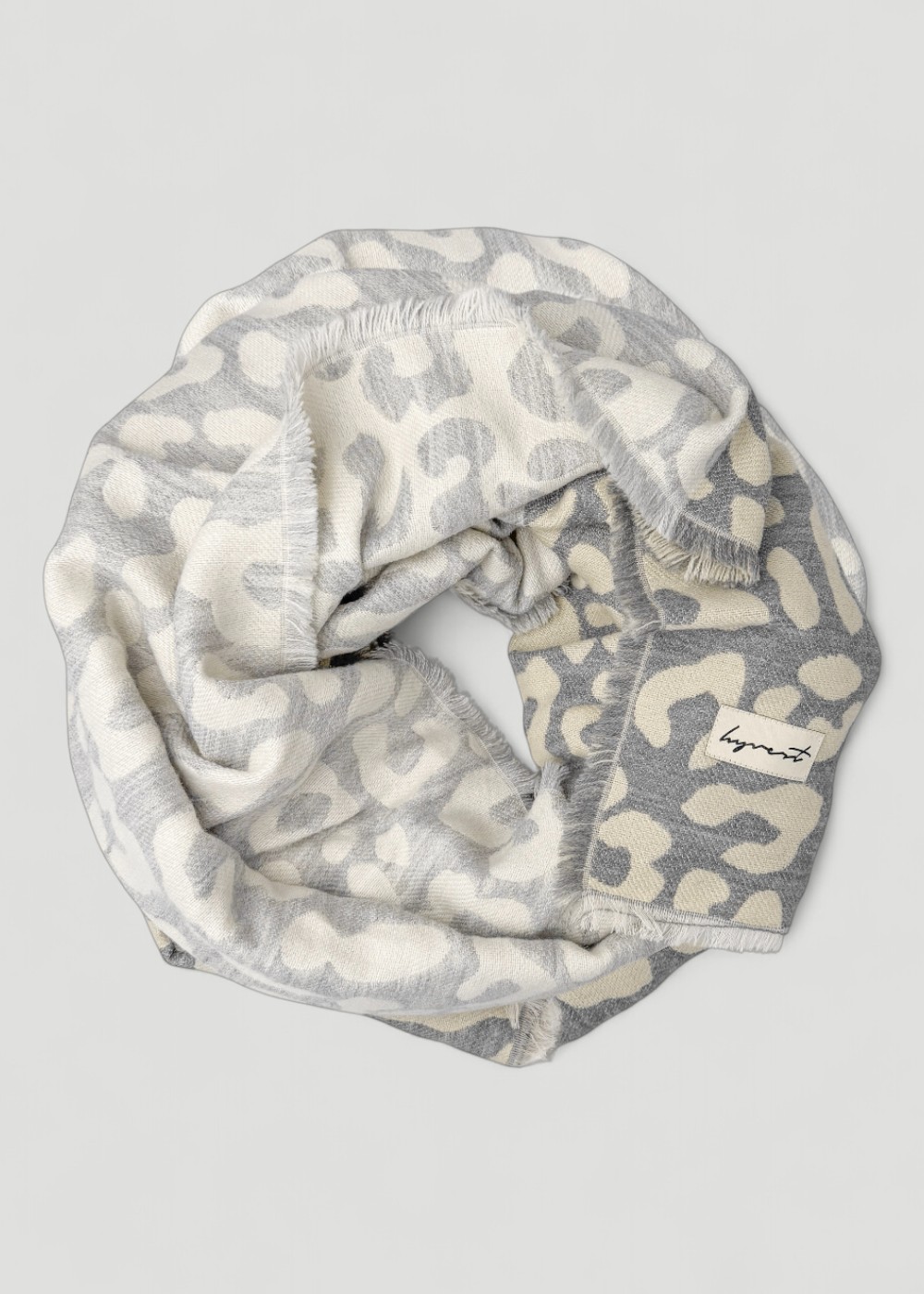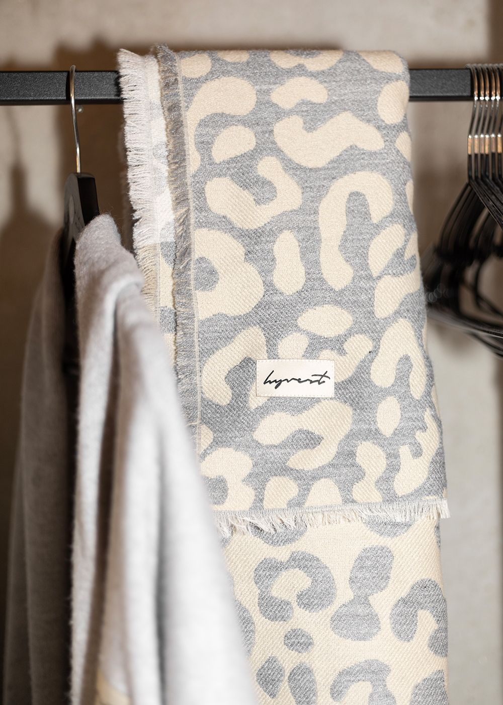 Soft Energy für graue Tage. Der Leo-Schal in Grey & Creamy Yellow bringt dezente Farbe in den Herbst. Superweich, voluminös, mit softem Webmuster und Fransenabschluss. Ob draußen oder daheim – dein emotional support piece für kalte Tage. Das große Leo Muster bringt dir Statement-Charakter. Maße: L 190cm x B 48cm