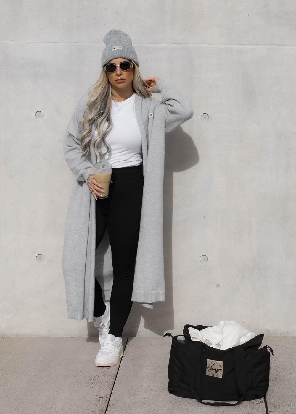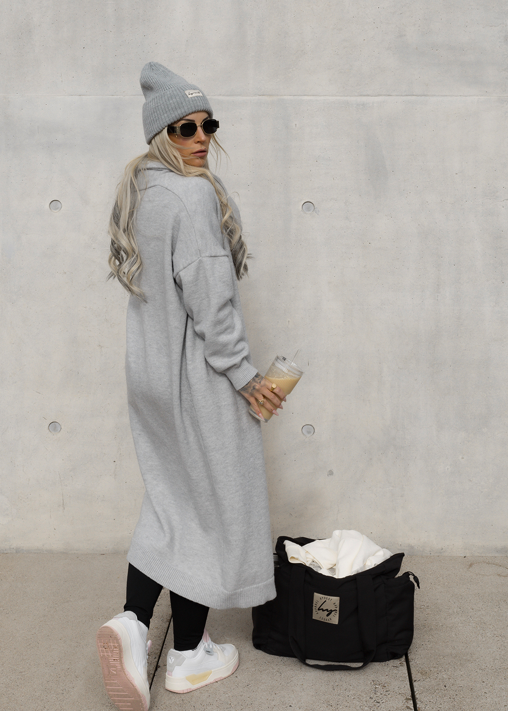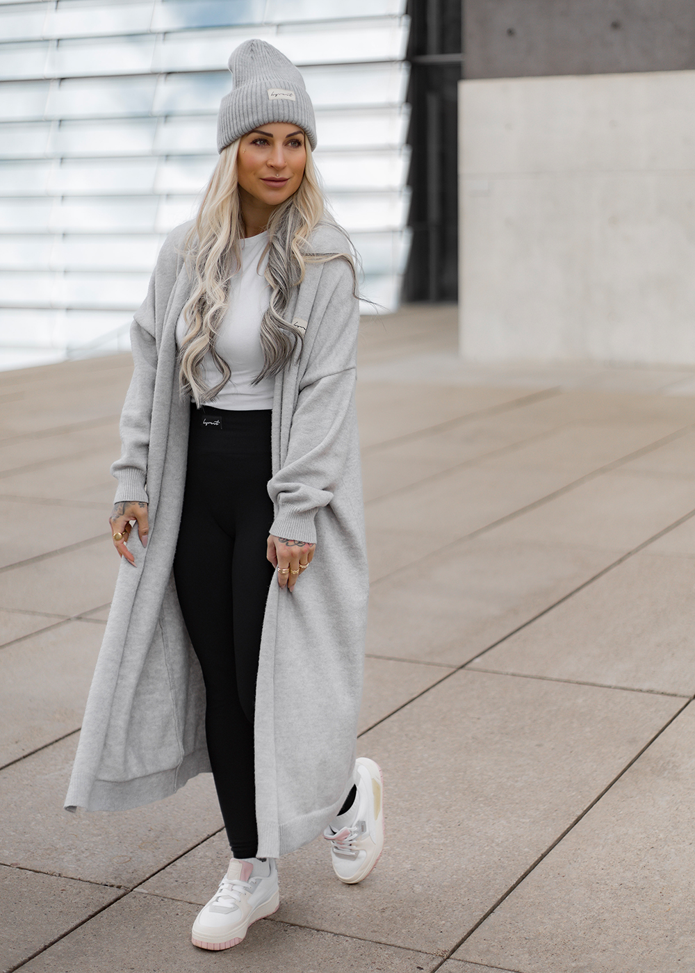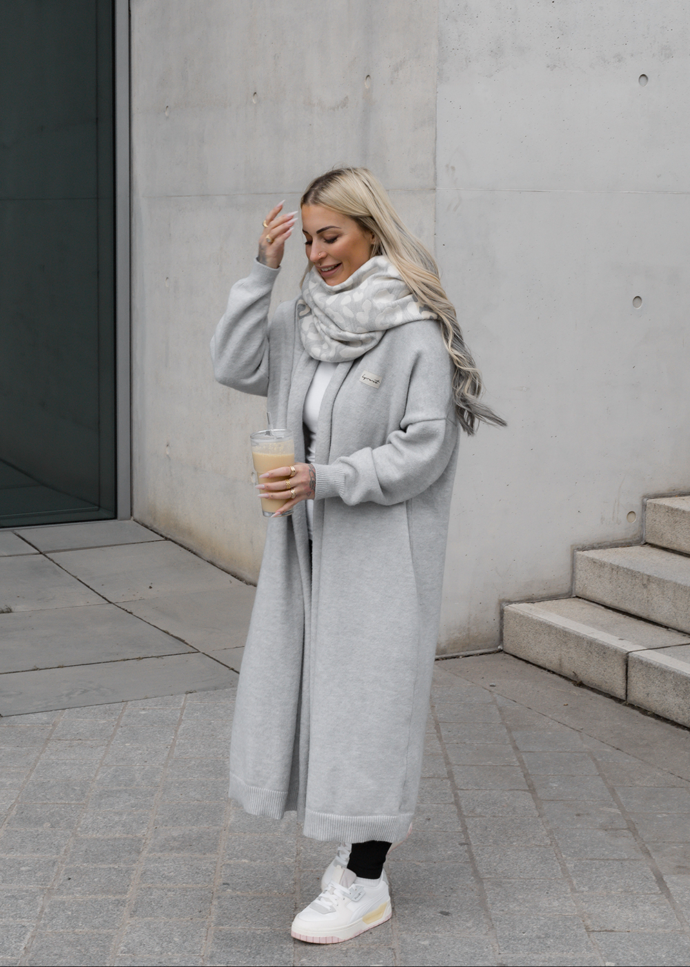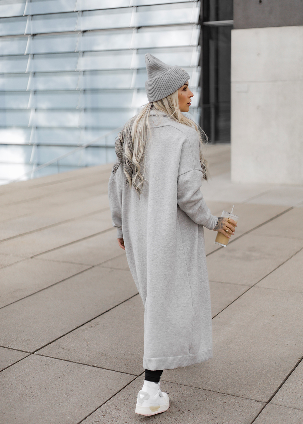 Dein Longline-Comfort für die kalte Saison. Der Cardigan in Mid Grey ist oversized geschnitten und fühlt sich wie eine Decke zum Anziehen an – weich, schwer genug für Struktur, leicht genug für Bewegung. Der fließende Fall und die offene Front machen ihn zum perfekten Layering-Piece. Kombinierbar mit jedem Ton – von Cream bis Black zu bunt.