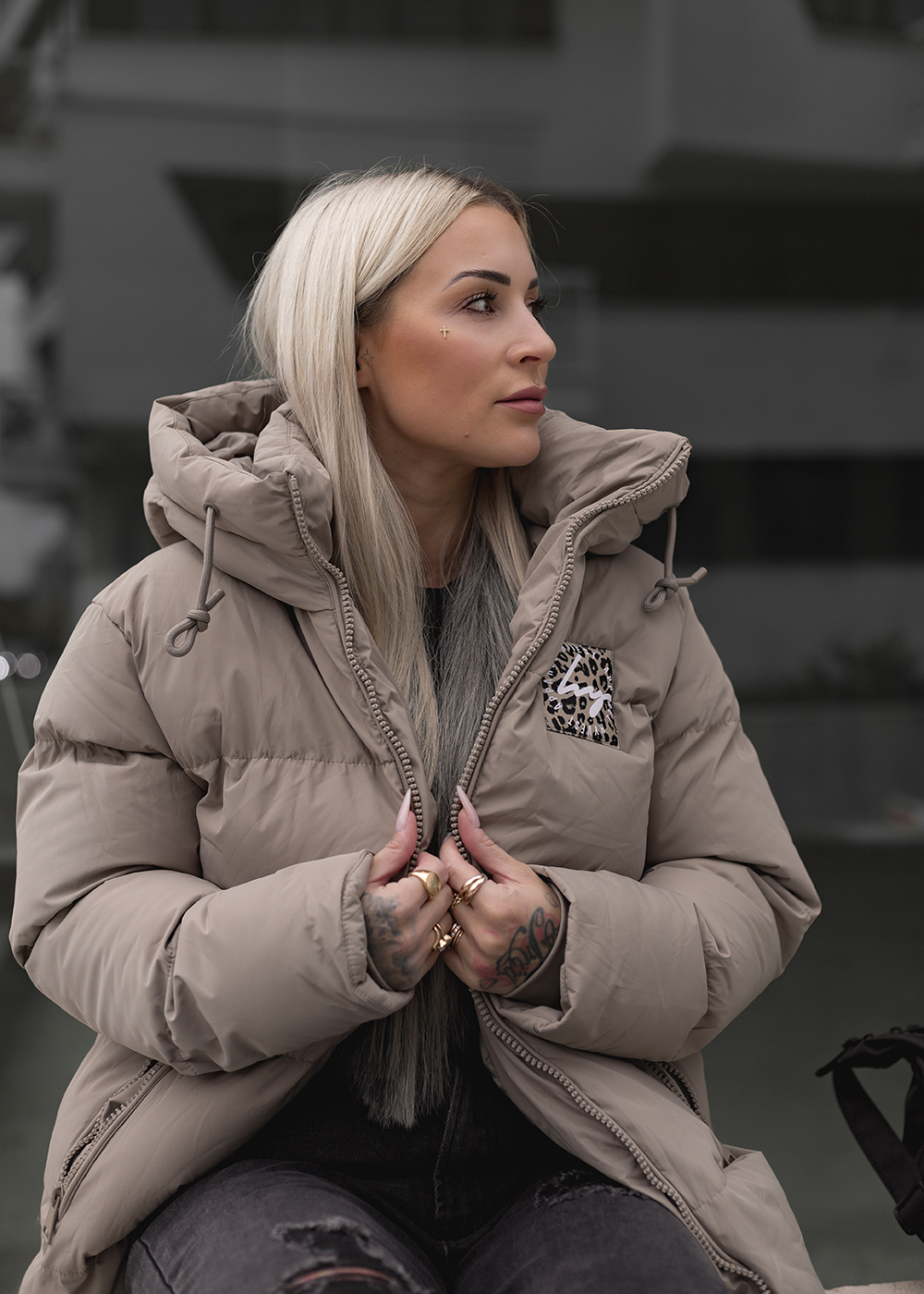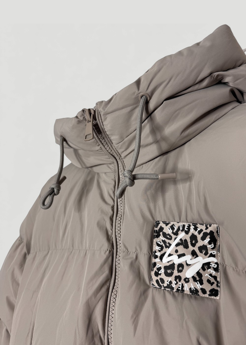 Warm, voluminös, vertrauenswürdig. Der Parka Mid Puffer Concrete verbindet Komfort mit Power – matte Oberfläche, mittellanger Schnitt, oversized Kapuze. Wasserabweisendes Material für maximale Funktionalität. Das Leo-Patch in Kontrastoptik steht für Stärke. Die Farbe: Concrete – weil Vertrauen nicht glänzen muss, um stark zu wirken. Roher warmer Beton vereint mit allen Merkmalen eines perfekten Parkas.
