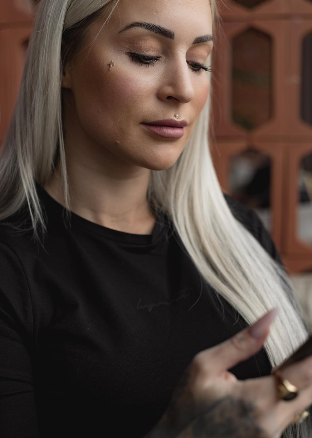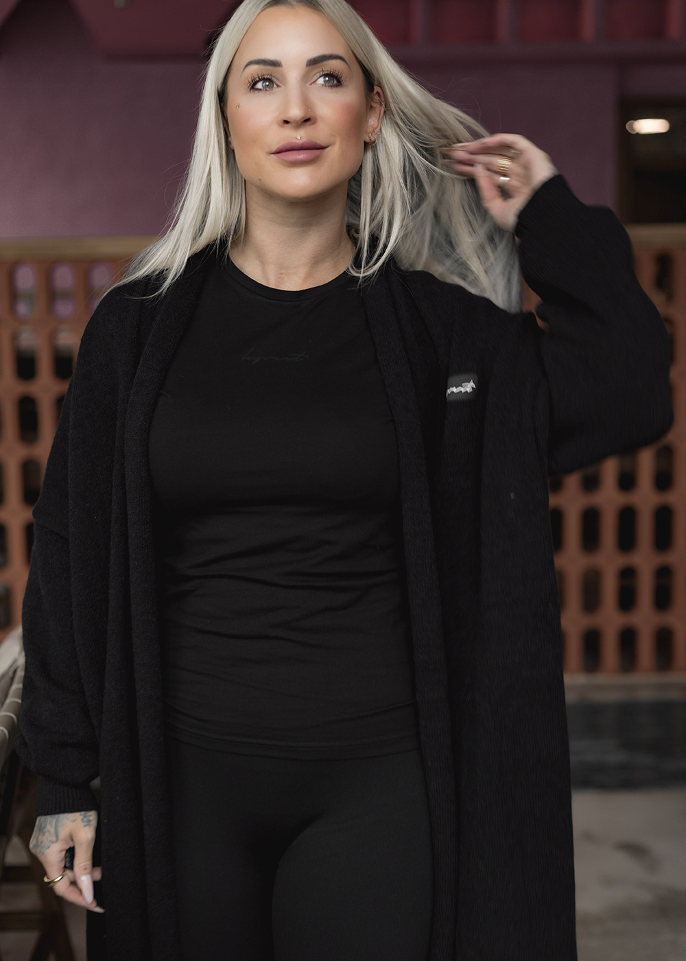 Minimal, aber nie langweilig. Das Longsleeve Basic in tiefem Schwarz bringt Ordnung in jeden Look – soft, super stretchy und körpernah. Der Ton-in-Ton-Print mit Silikonhaptik hält’s clean, der Fit sitzt perfekt. Ein Piece, das mit dir mitgeht – every damn day. Pure. Straight. Essential.