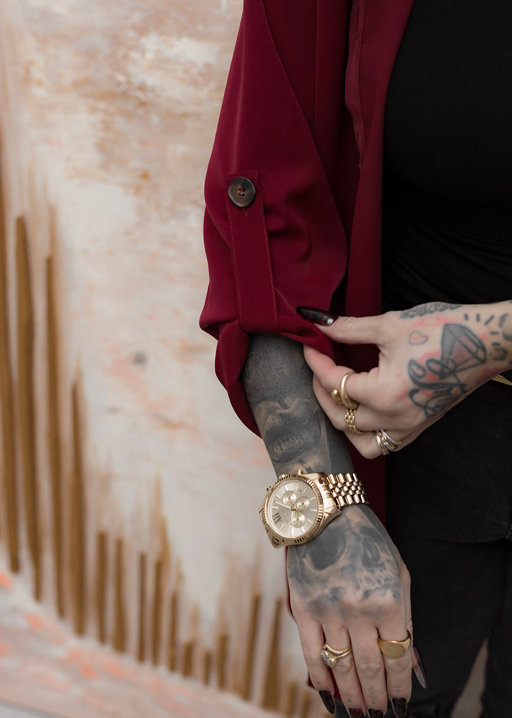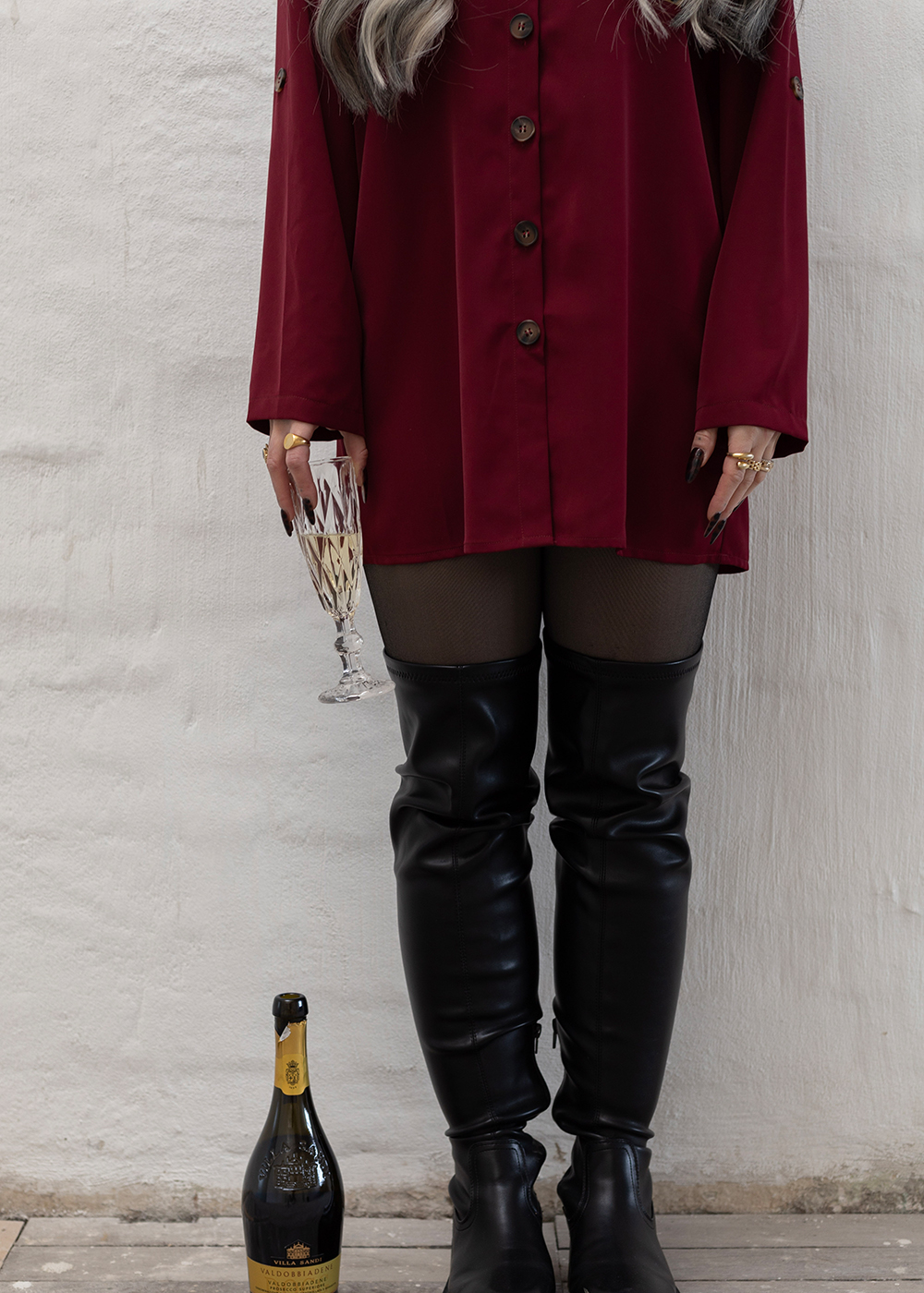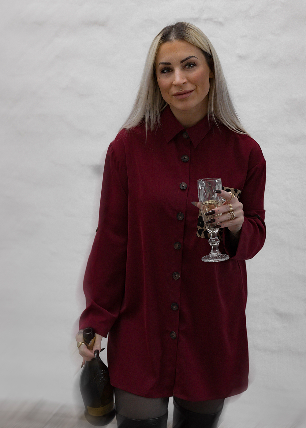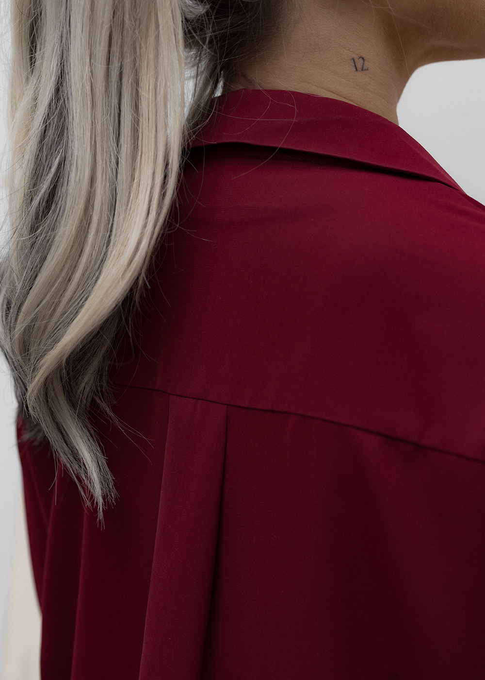 Der Burgunder-Ton, der jedem Outfit sofort Wärme gibt – kombiniert mit dem Signature Leo Patch im typischen HYVEST Look. Der Blouson fällt locker, ist easy zu layern und hat diesen cleanen, weichen Stoff, der nicht knittert und sich super smooth trägt. Lässig offen, cozy geschlossen, easy hochgekrempelt: ein Allrounder für Alltag, Büro & Dinner.
