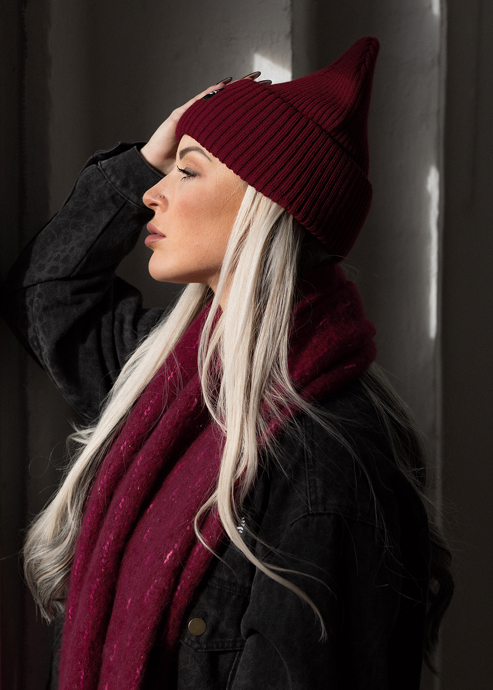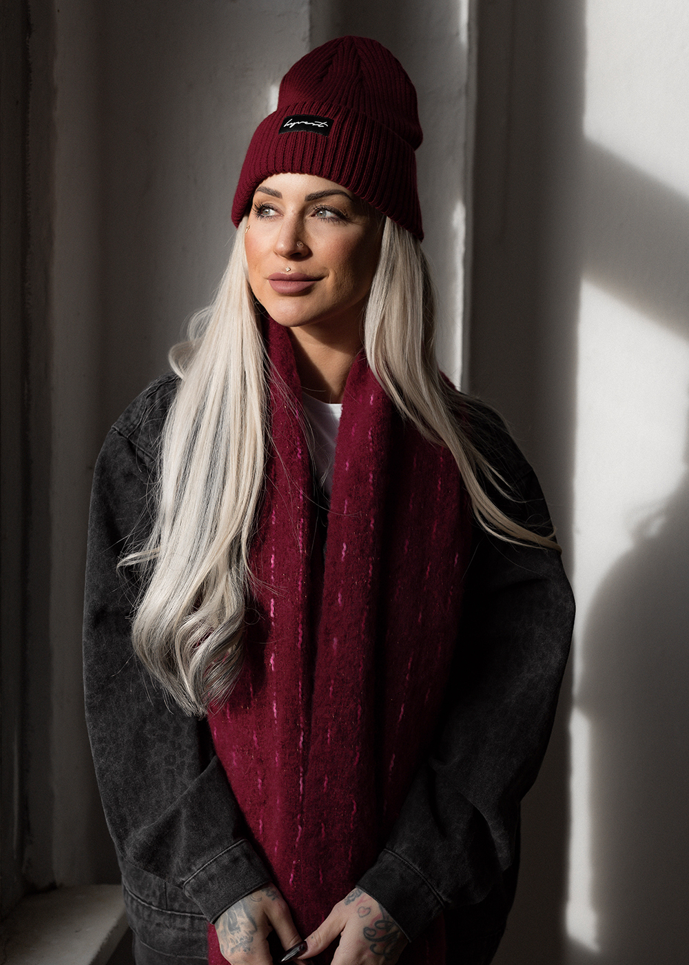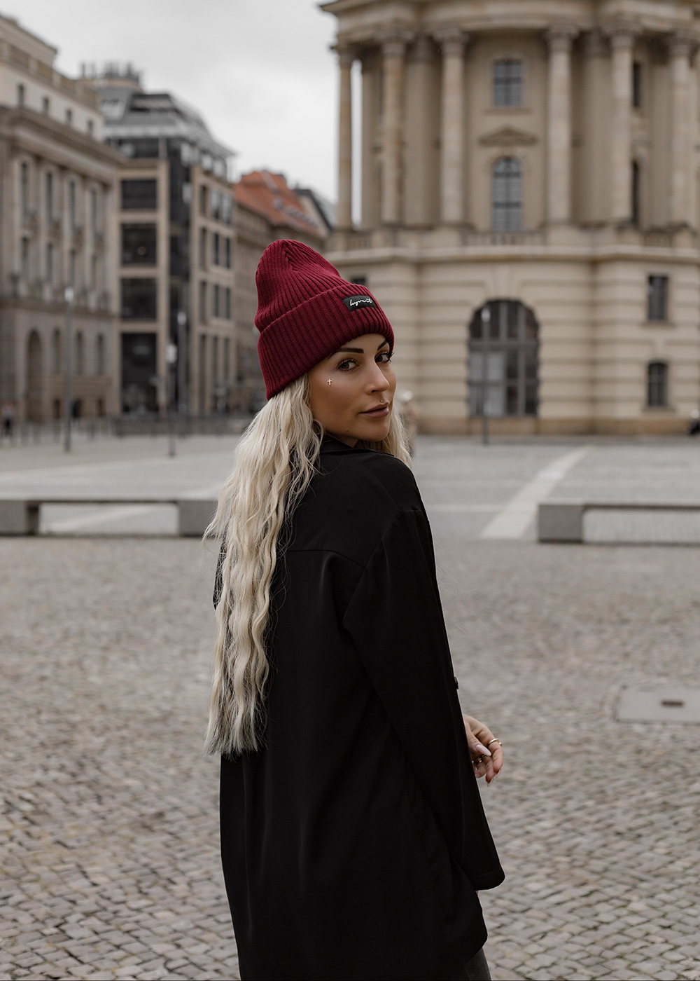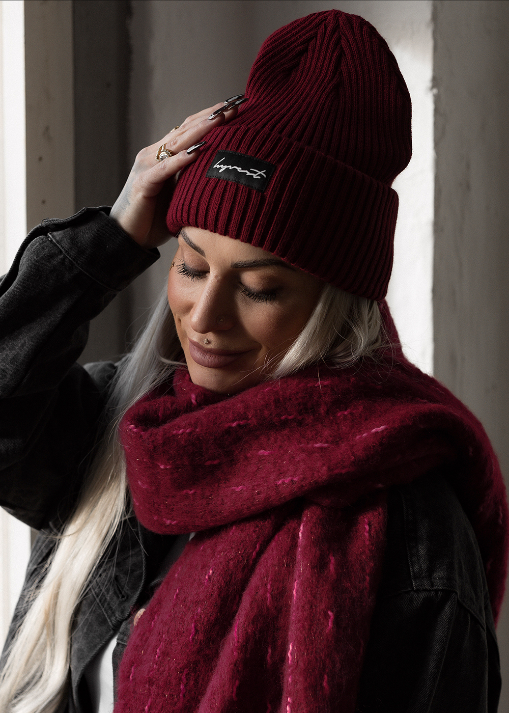 Der perfekte Wine-Ton für Wintertage. Die Beanie ist weich gestrickt, sitzt stretchy auf dem Kopf und hat vorne das HYVEST Patch als Highlight. Warm, cozy und nicht zu eng – kein Druck, kein Verrutschen.