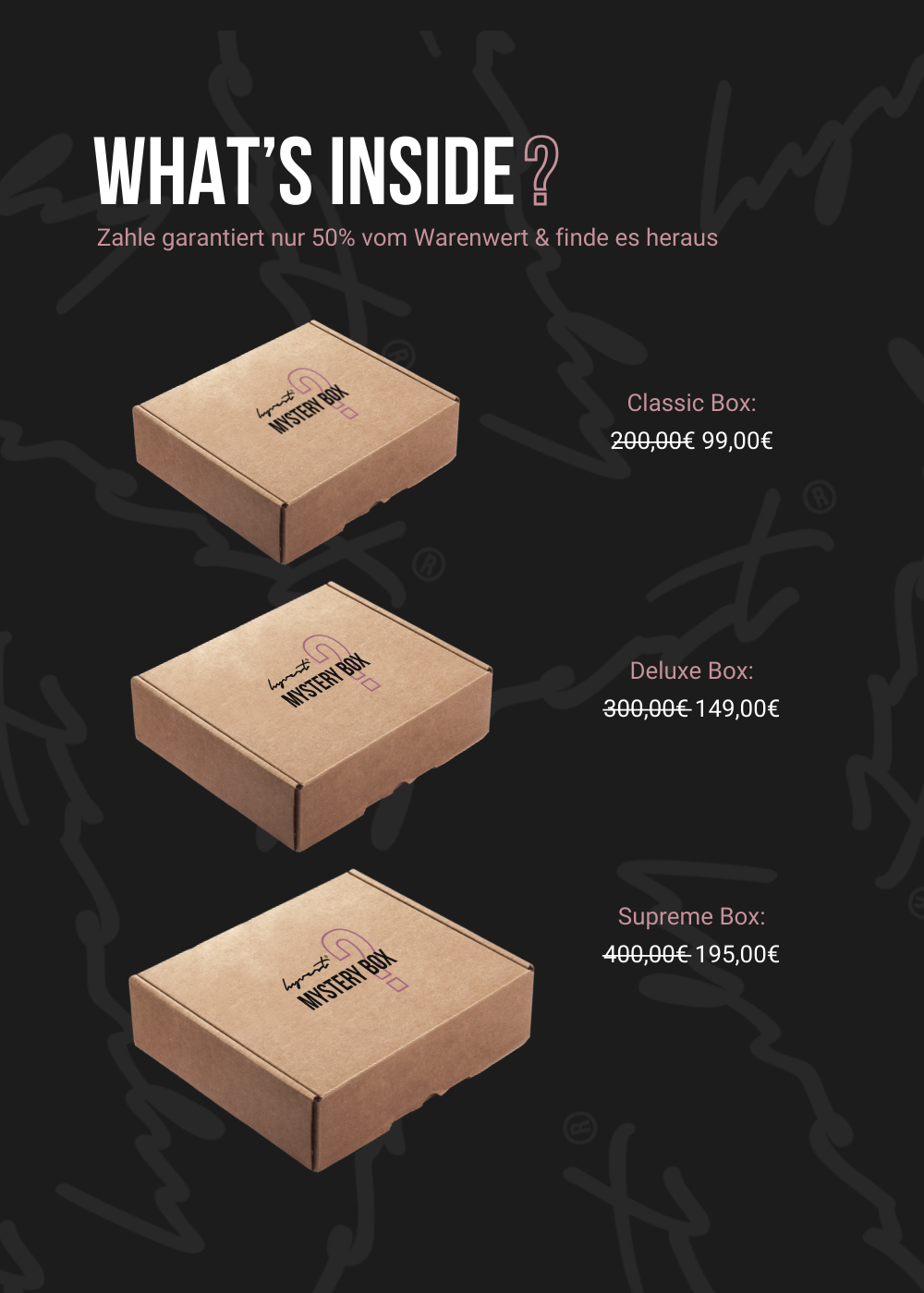 // Streng limitiert: Maximal 2 Mystery Boxen pro Größe & pro Person