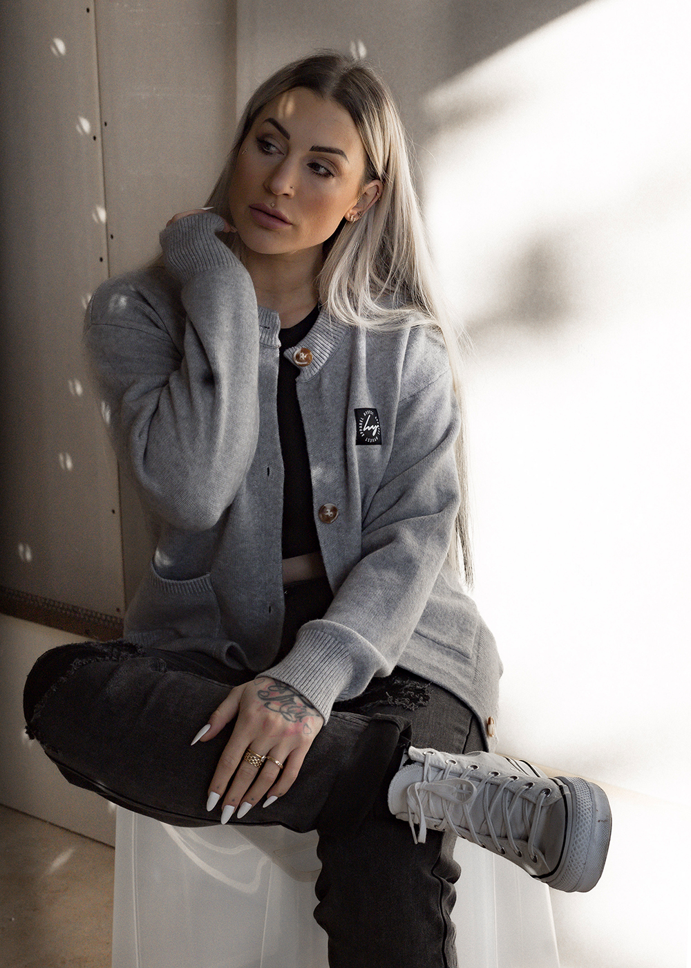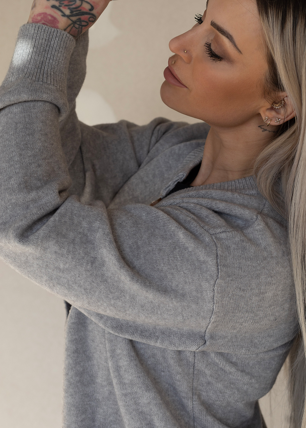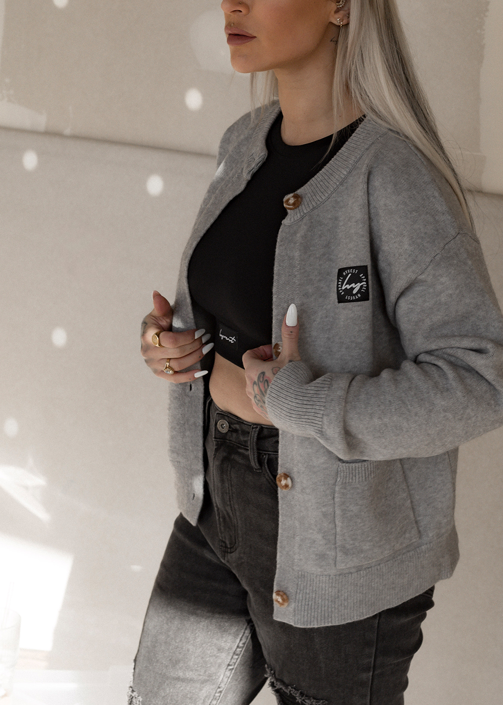 Der Cardigan Short Soft Grey ist ein cozy Essential für jeden Tag. Der kurze Schnitt wirkt modern und lässt sich perfekt zu High-Waist-Jeans oder lässigen Hosen stylen. Das weiche, angenehme Material sorgt für ein warmes Tragegefühl. Die Knopfleiste und die aufgesetzten Taschen geben dem Cardigan eine klare, zeitlose Optik. Ein unkompliziertes Piece für Zuhause, Office oder unterwegs – easy, weich und stilvoll.
