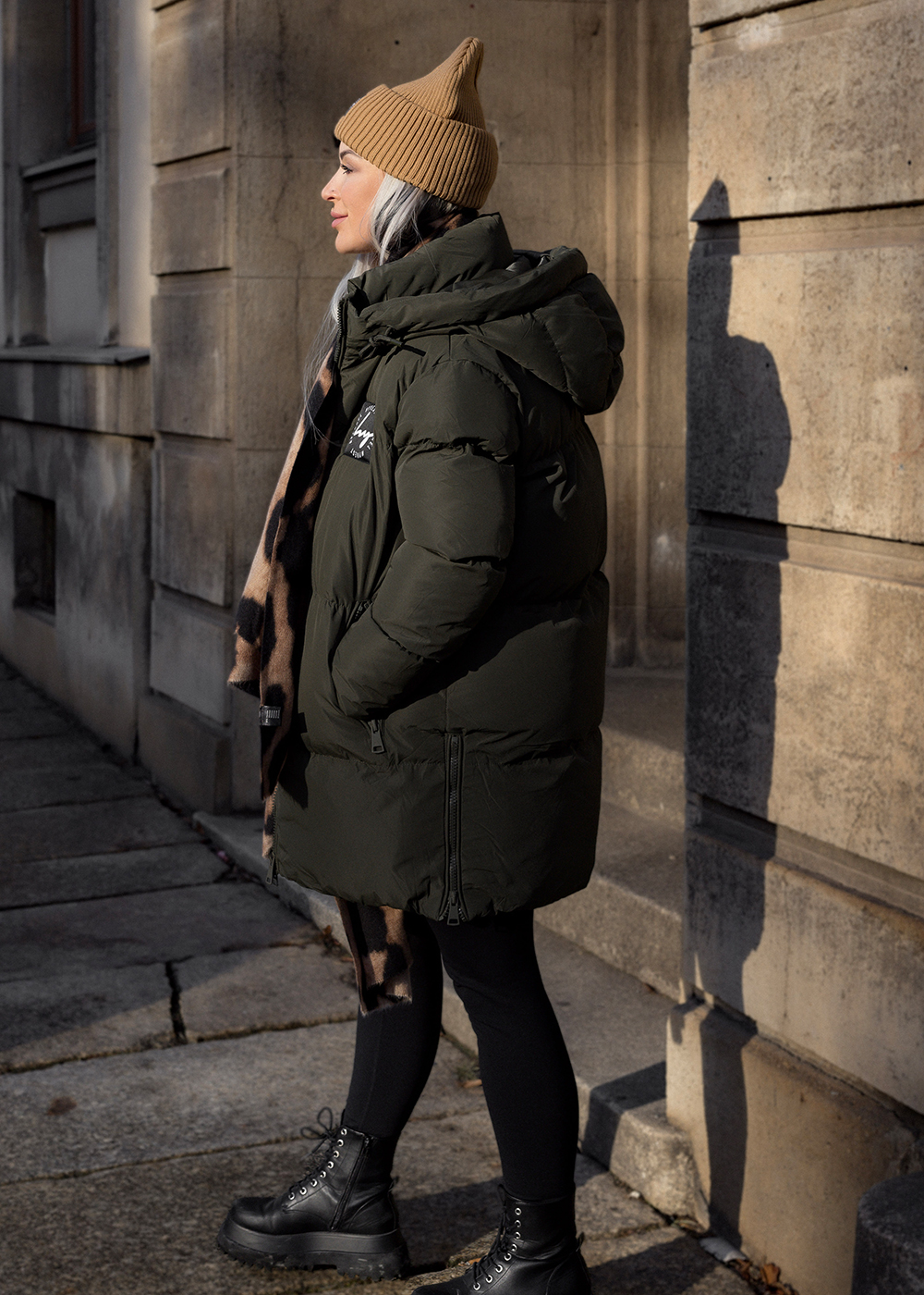 Der Parka Mid Puffer Olive ist dein Go-to für kalte Tage, an denen Funktion und Style gleich wichtig sind. Die gedeckte Olivfarbe wirkt ruhig, urban und lässt sich easy in jeden Alltagslook integrieren. Der mittellange Schnitt schützt zuverlässig vor Kälte, während die voluminöse Puffer-Steppung für angenehme Wärme sorgt. Das robuste Obermaterial hält Wind und Kälte stand, die gefütterte hoch schließbare Kapuze sorgt für zusätzlichen Schutz. Ein Parka, der dich durch City-Tage, Winter-Spaziergänge und den ganz normalen Alltag begleitet – unkompliziert, warm und modern.