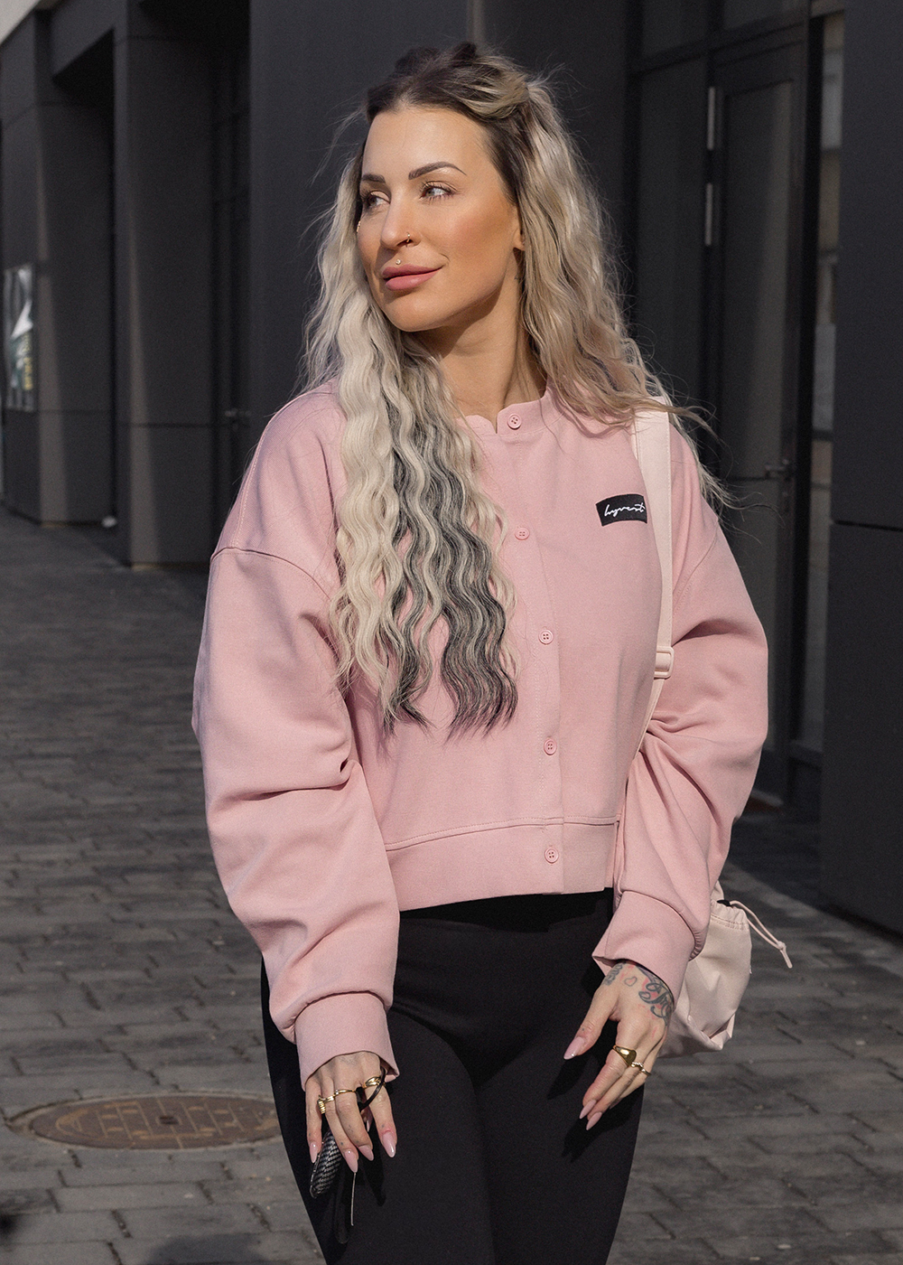 Unsere Button Jacket Cropped Blush verbindet feminine Farbe mit einem cleanen Streetstyle-Schnitt. Das weiche Blush-Pink bringt Frische in jedes Outfit, während die kurzen Proportionen den Look modern und leicht machen. Die Knopfleiste vorn sorgt für einen sportlichen Charakter und ermöglicht verschiedene Stylingvarianten – offen getragen über Bodys, geschlossen als Statement-Top oder halb geschlossen für süße Stylings. Der Cropped-Schnitt passt perfekt zu High-Waist Jeans, Leggings oder Röcken. Ein unkompliziertes Layering-Piece für Frühlingstage und milde Sommerabende.