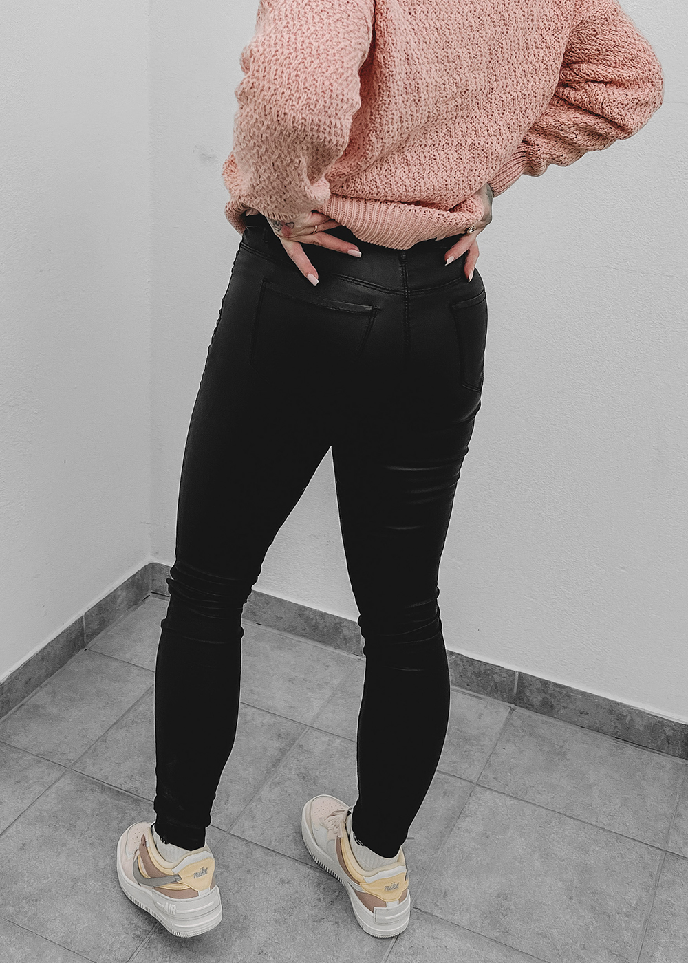 Beschichtete Midwaist-Hose mit hohem Stretch-Anteil.